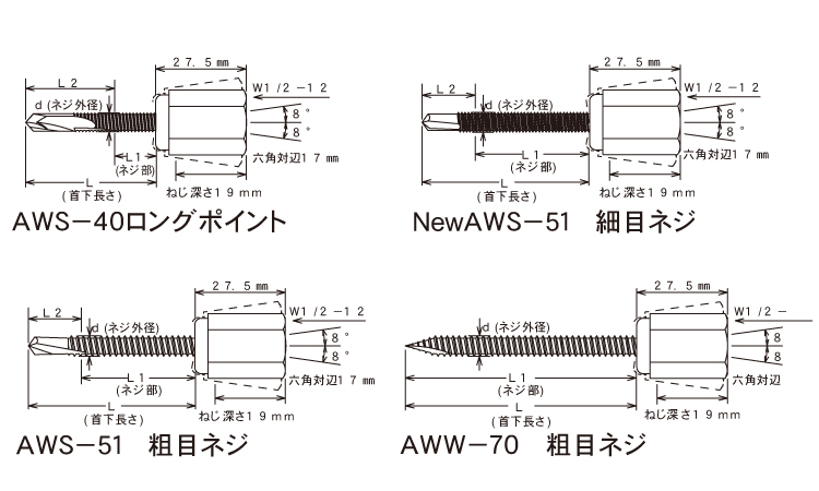 サイズ 径+長さ(ℓ) |