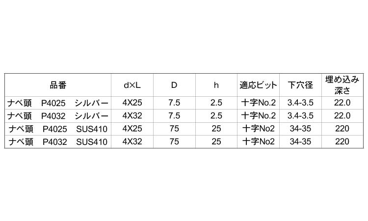 SUS410 | 生地 | P4025(100 | 要確認 | なし | 1 | 3,848円 3,499円 | ||
