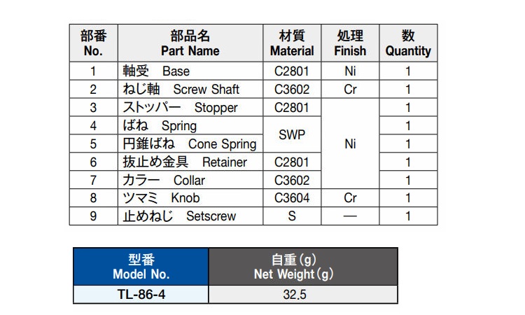 材質 | 表面処理 |