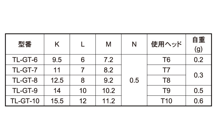サイズ 径+長さ(ℓ) |