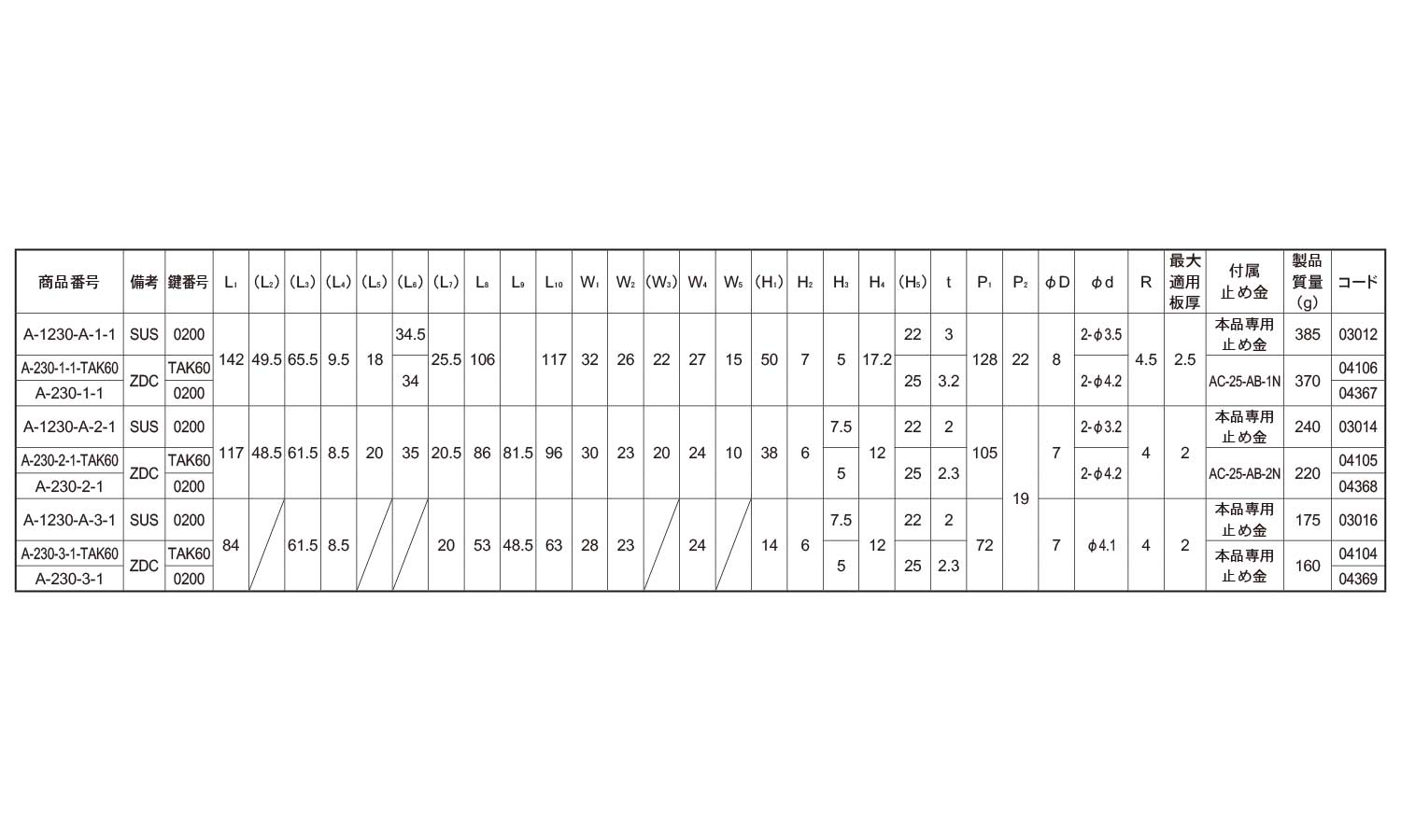 | 商品名 商品コード |