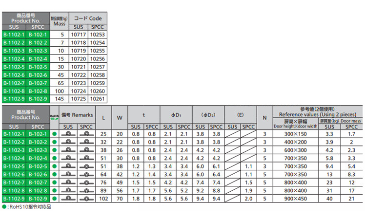 平型蝶番(Bー1102、Bー1059、Bー102)