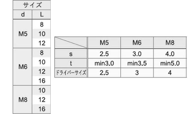 サイズ 径+長さ(ℓ) |