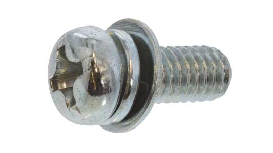 緩みや座面の陥没を防ぐために使われる座金を、予めネジに組み込んだものです。座金を入れ忘れや、落ちてなくしてしまう煩わしさがなくなり、作業効率を上げることができます。