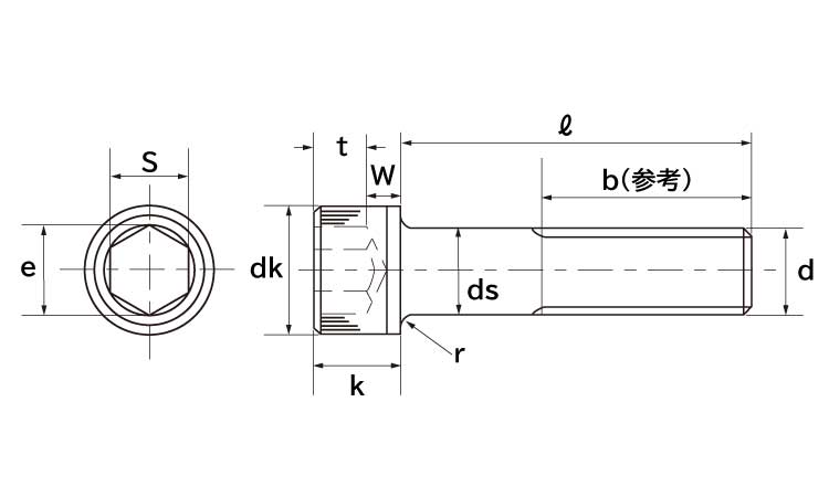 円筒形の頭部に六角形の穴があいているボルトです。