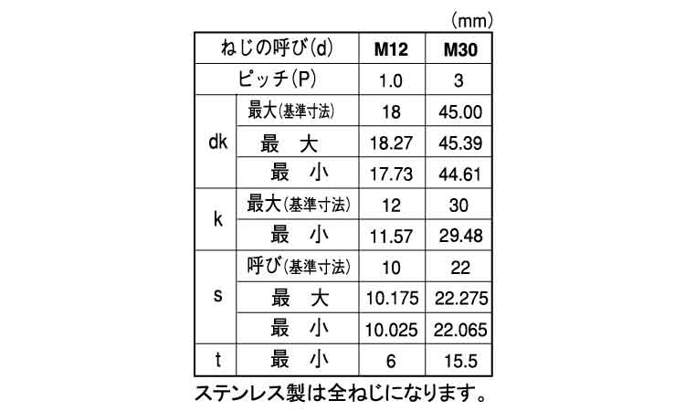 ステンレス | 生地 | 12X45(P-1.0 | あり | あり | 50 | 275円 250円 | ||