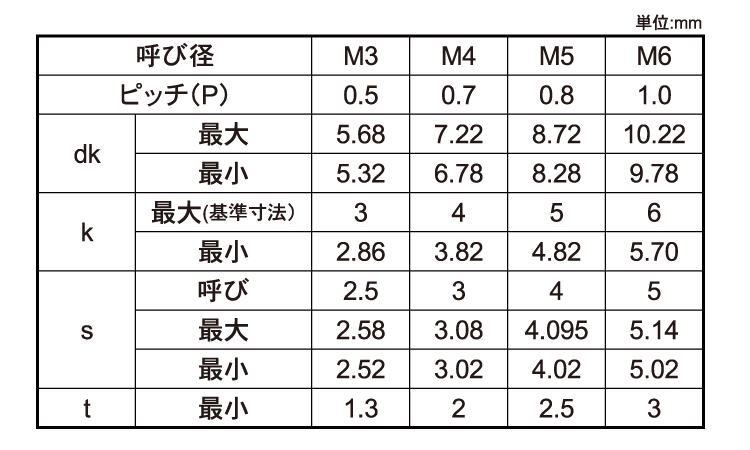 ステンレス | 生地 | 3 X 6(P=0.5 | あり | あり | 500 | 232円 211円 | ||