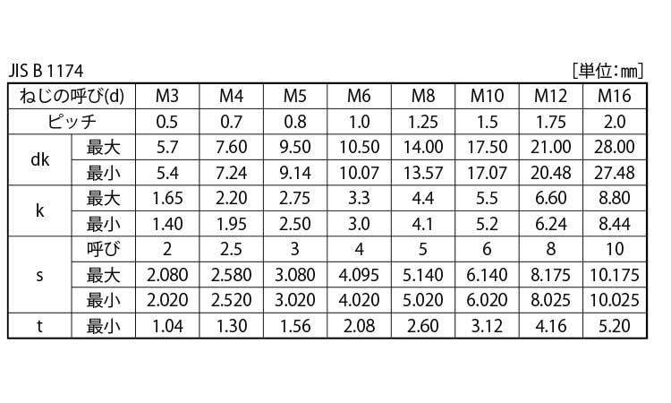JIS規格(メーカー:日産ネジ、アンスコ、アルプス精工)