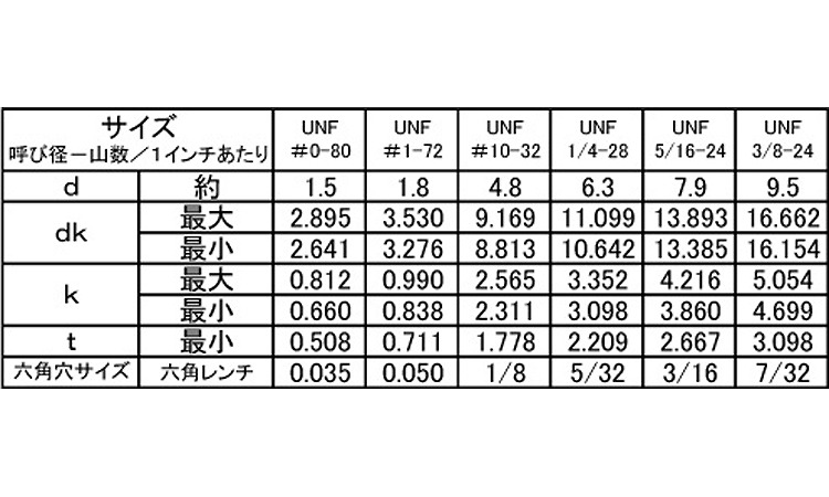 JIS規格(メーカー:日産ネジ、アンスコ、アルプス精工)