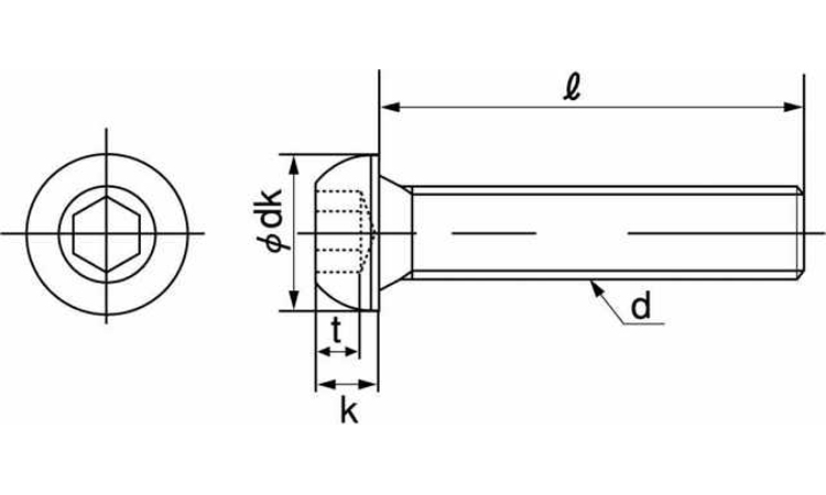 丸みを帯びた頭の形が特徴の、六角穴付きボタンボルト。