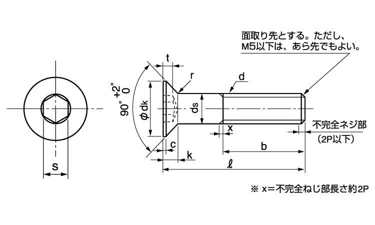 ■六角穴付き皿ボルト-JIS B 1194-
