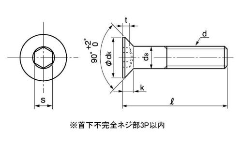 また、六角穴付きボタンボルトと同じく、六角穴の大きさが六角穴付きボルトより小さめです。皿キャップとも呼ばれます。
