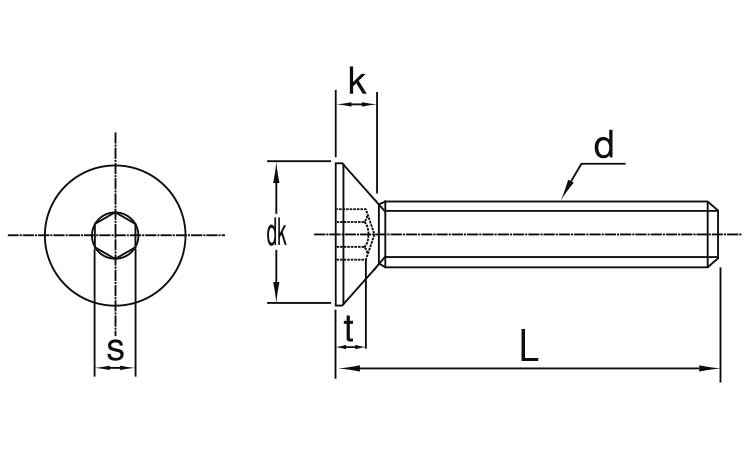 また、六角穴付きボタンボルトと同じく、六角穴の大きさが六角穴付きボルトより小さめです。皿キャップとも呼ばれます。