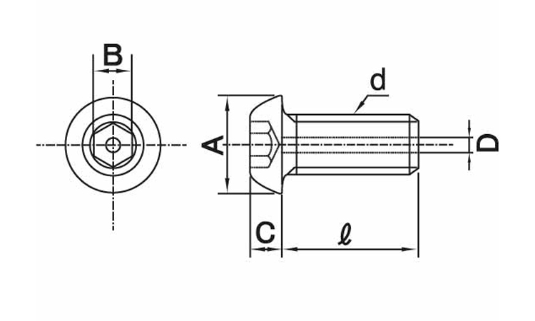 丸みを帯びた頭の形が特徴の、六角穴付きボタンボルト。ネジ中心部にエア抜き用の穴が開いています。