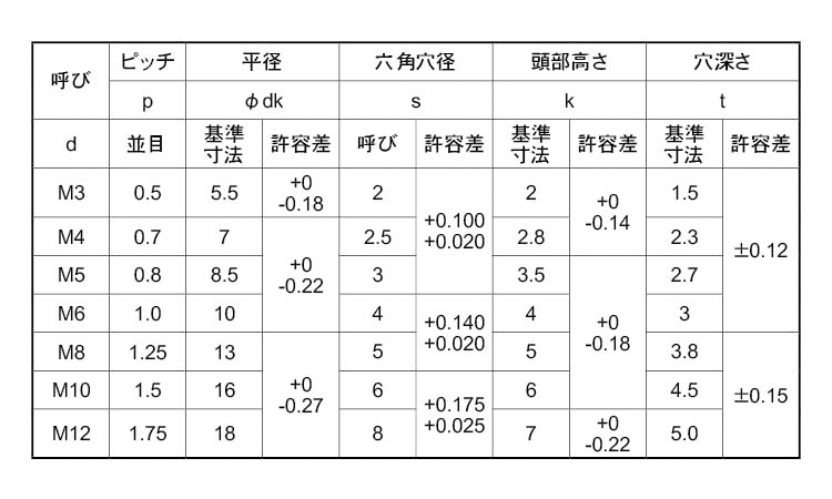 ローヘッド六角穴付ボルト
