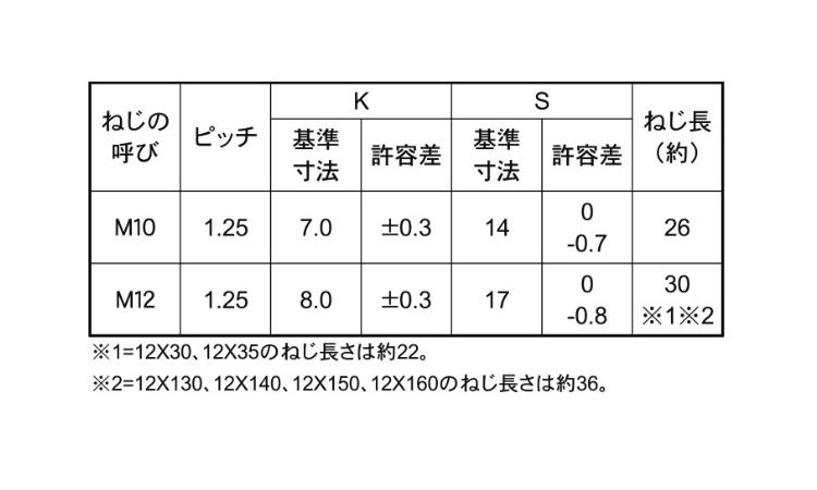 鉄 | 三価ホワイト(銀) | 12X160(1.25 | 要確認 | 30 |