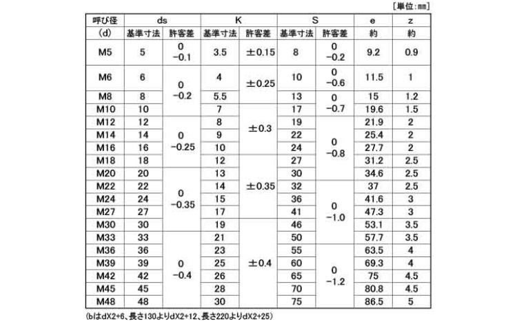 径サイズにより、次の長さ以上は半ネジとなります。