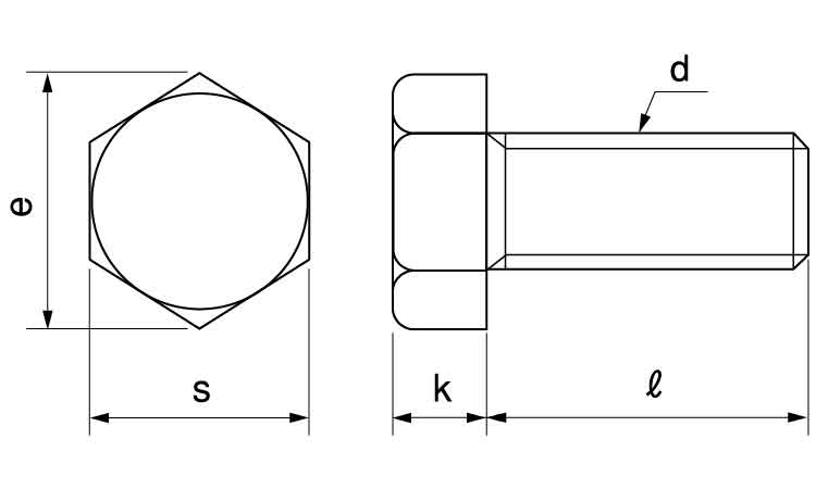 ●全ネジ=頭部以下が全てネジが切られているボルトです。(長さ30mm以下が目安です)