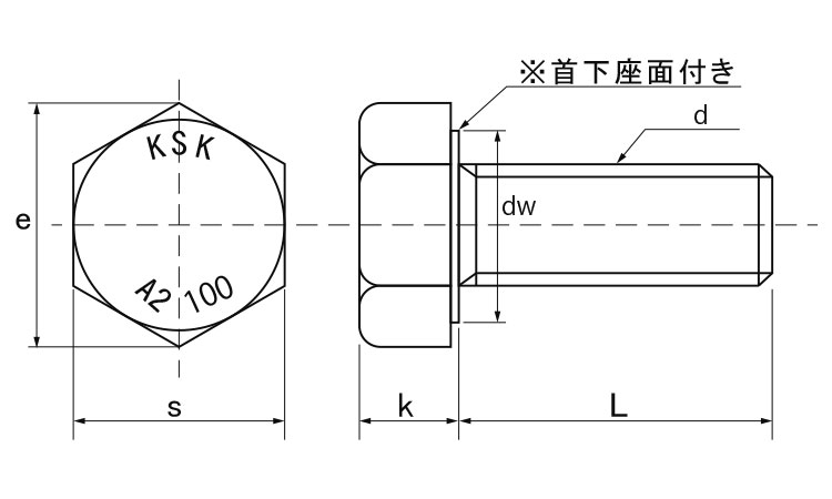 A2-100 六角ボルト(全ねじ