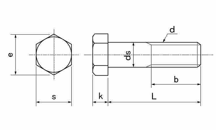 ●全ネジ=頭部以下が全てネジが切られているボルトです。(長さ30mm以下が目安です)