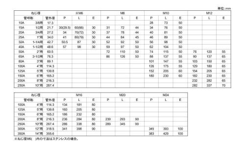 サイズ表記(M6x15A等)の最後につく「15A」とは一般鋼管の管外径を表します。