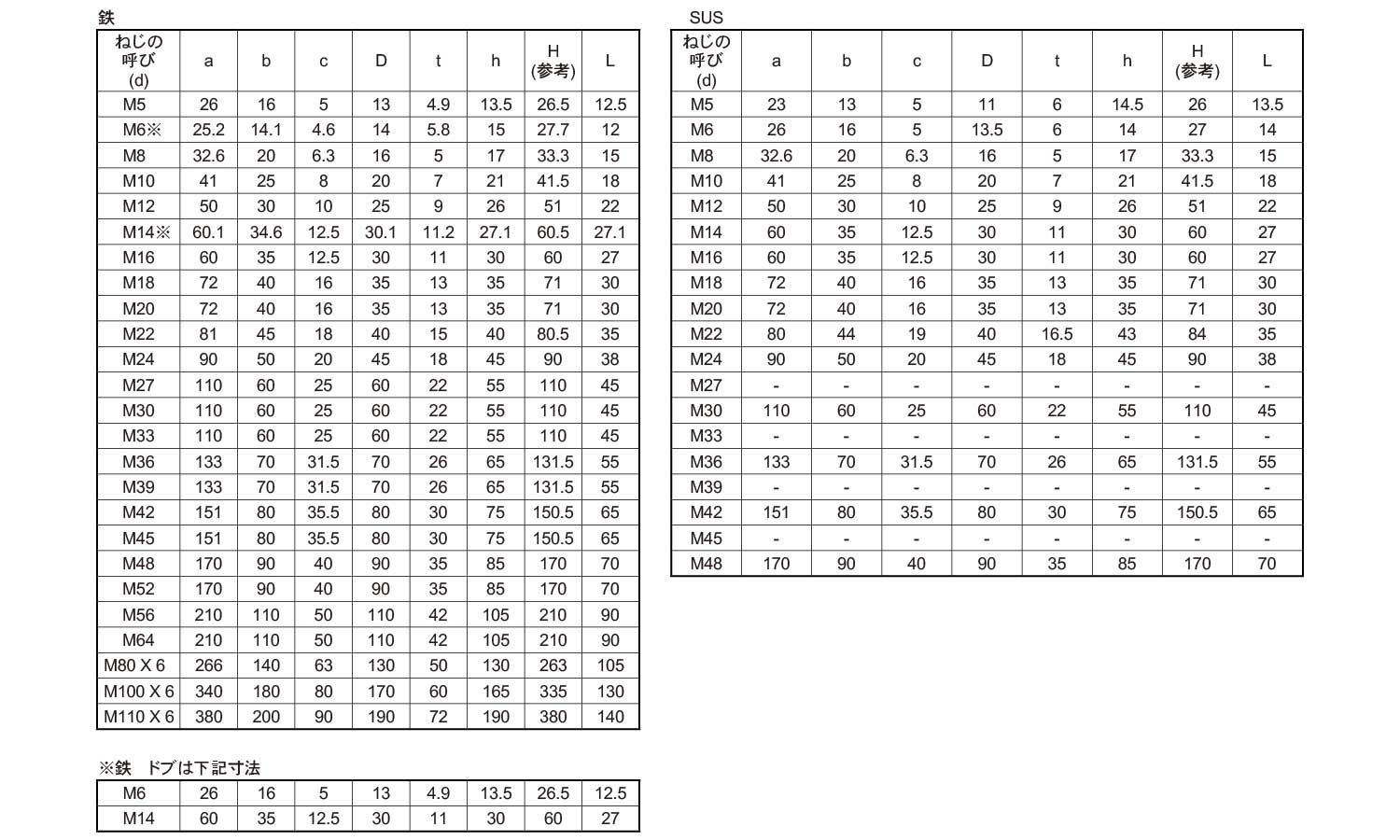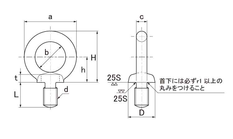 | ねじの呼び (d) | a | b | c | D | t | h | H (参考) | I | 使用荷重KN(kgf) | 重量 1個 約kg | |||