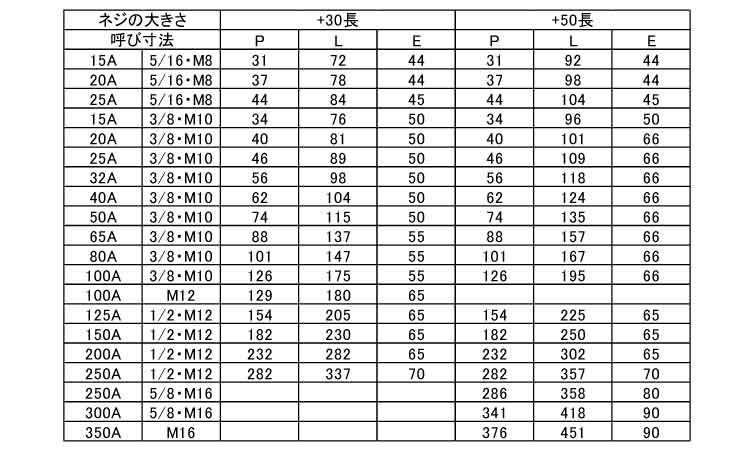 例えば15Aと言われると、その「呼び方」の一般鋼管の寸法のものがあてはまります。6x15Aなら、M6の径で15A(21.7ミリ)の呼び外径の一般鋼管を固定する為のボルトになります。