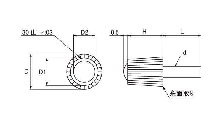 サイズ 径+長さ(ℓ) |