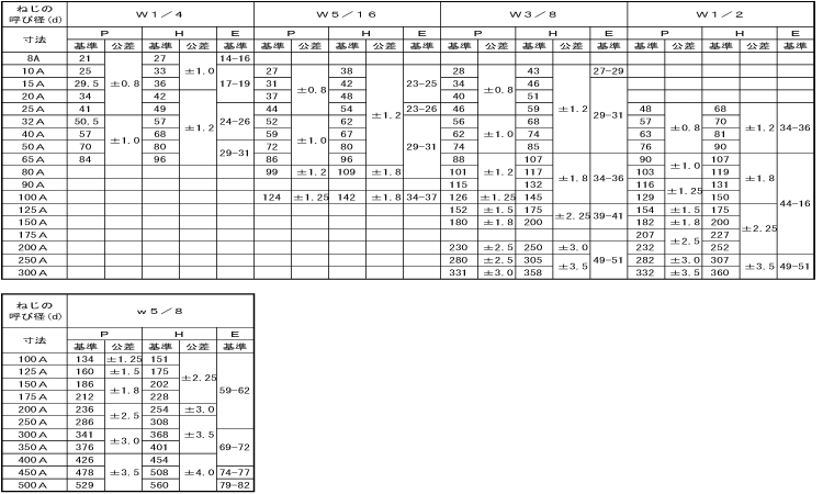 例えば15Aと言われると、その「呼び方」の一般鋼管の寸法のものがあてはまります。6x15Aなら、M6の径で15A(21.7ミリ)の呼び外径の一般鋼管を固定する為のボルトになります。