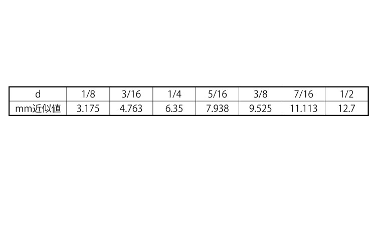 径公差: +0.0001"~+0.0003"(ミリ換算:+0.0025~+0.0076) インチサイズです。