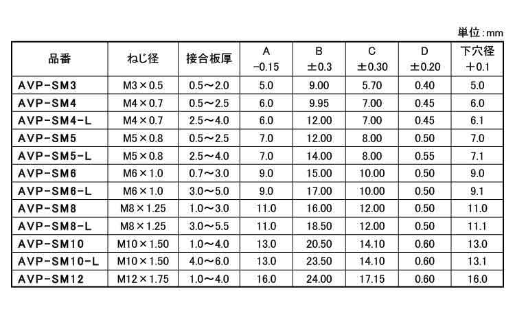 鉄 | 三価ホワイト(銀) | AVP-SM5-L | あり | なし | 1,000 | 20.57円 18.7円 | ||