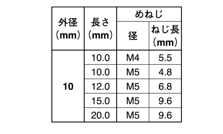 メねじスタッド(TP型・外径10