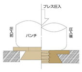 圧入されると六角フランジ部が母材を変形流動させ、テーパー部へ母材を流し込みます。