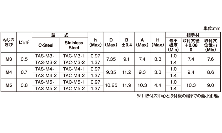 鉄 | 三価ホワイト(銀) | TAS-M5-1 | あり | なし | 1,000 | 178円 161円 | ||