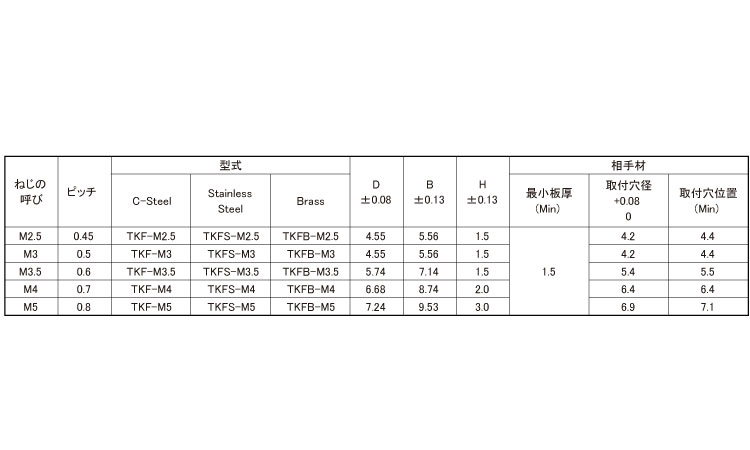 ステンレス | 生地 | TKFS-M2.5 | 要確認 | なし | 1,000 | 70.14円 63.77円 | ||