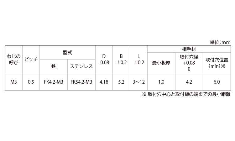 鉄 | 三価ホワイト(銀) | FK4.2M3-8 | 要確認 | なし | 1,000 | 52.93円 48.12円 | ||