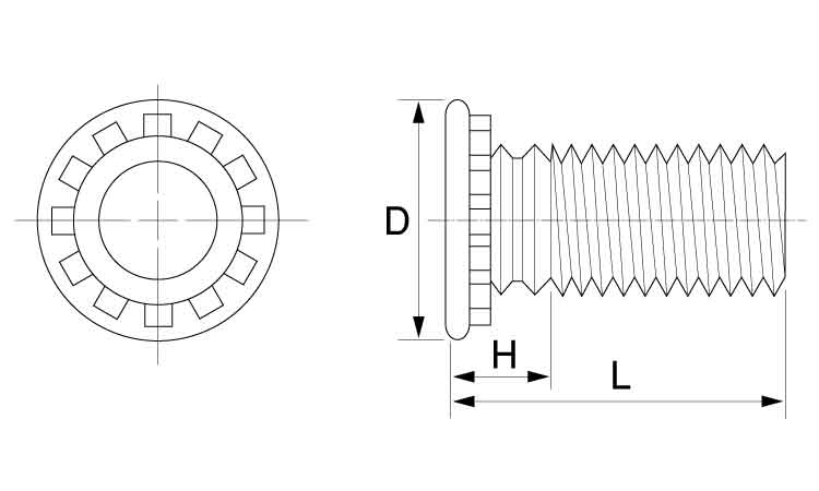 ●あらかじめ金属板に空けられた下穴に入れ、通常のプレスで圧入するだけで垂直度の正確なねじが立てられ、板の表面が平滑で突起のない美しい仕上がりが出来ます。