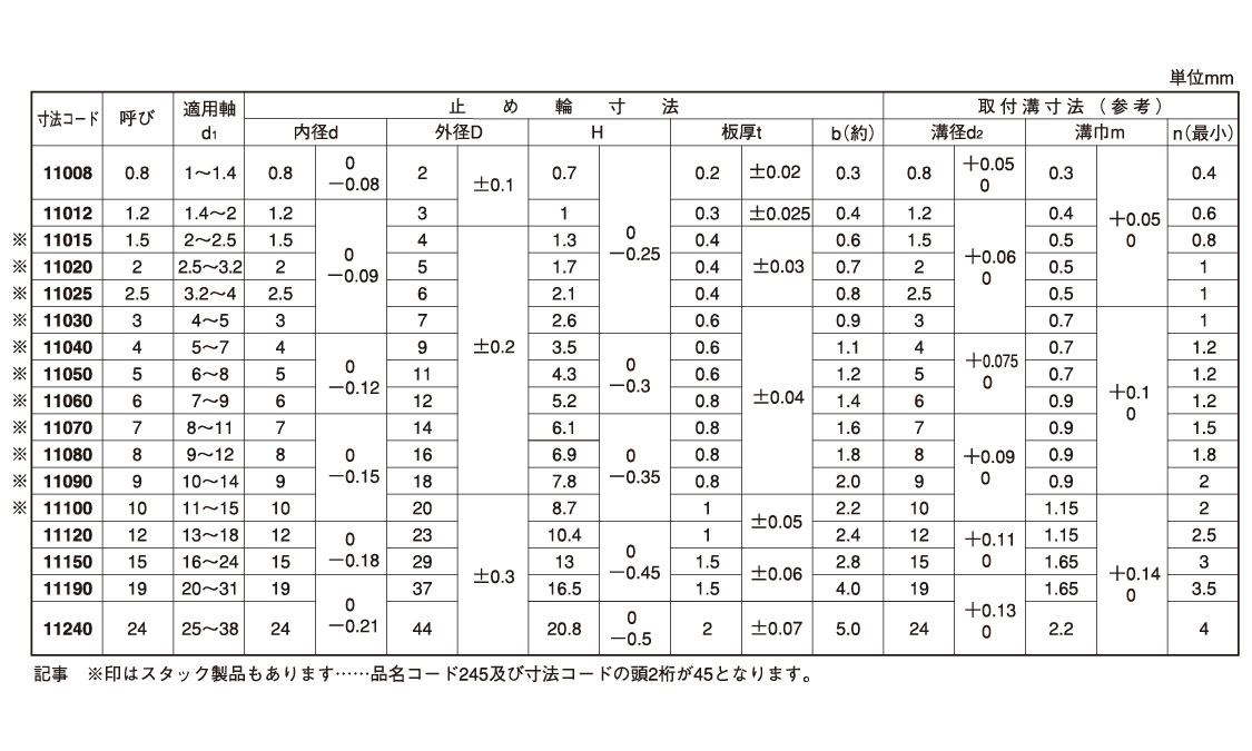 軸用のみで、商品の呼びサイズはスナップリングと違い、軸の溝径が商品サイズ名です。