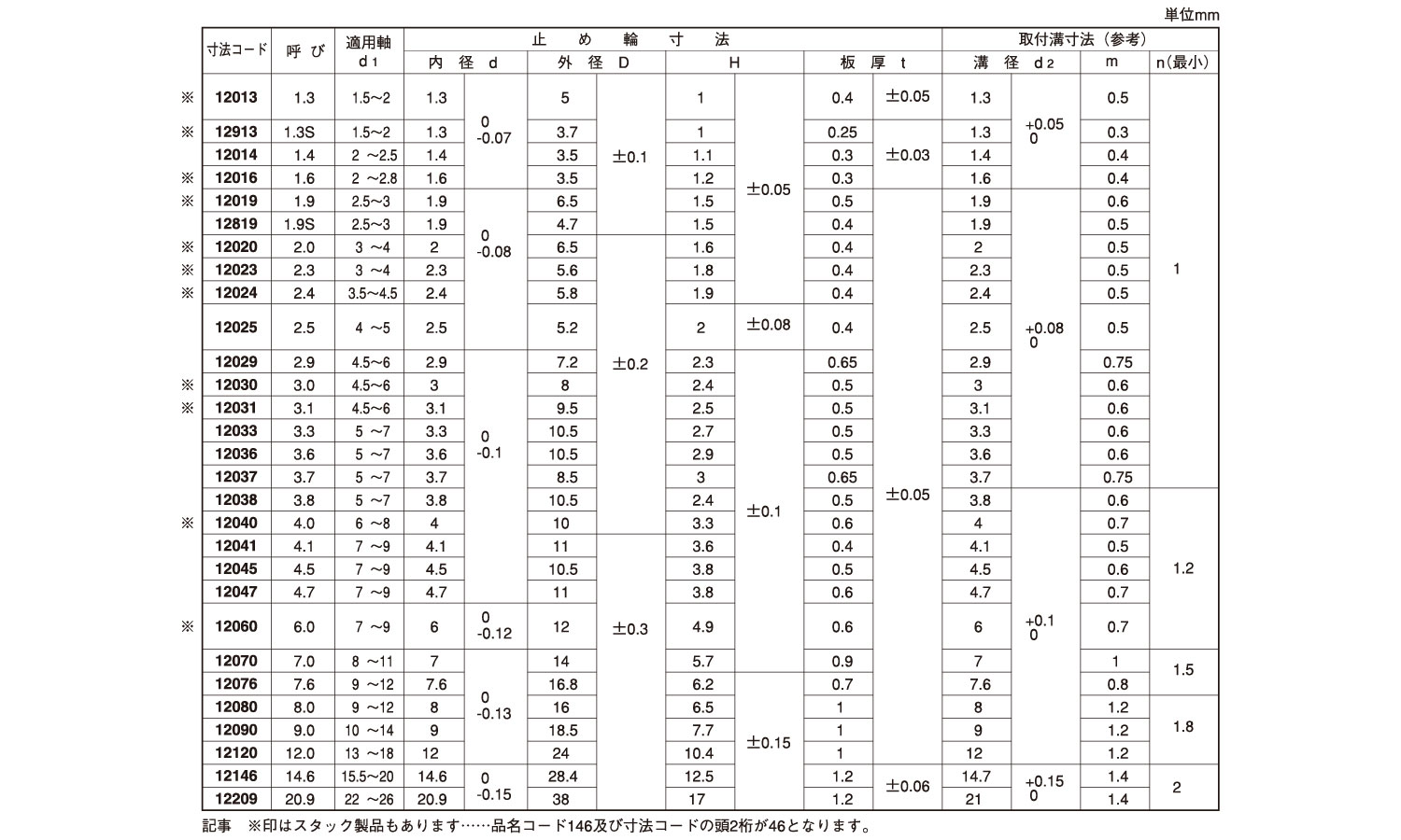 軸用のみで、商品の呼びサイズはスナップリングと違い、軸の溝径が商品サイズ名です。