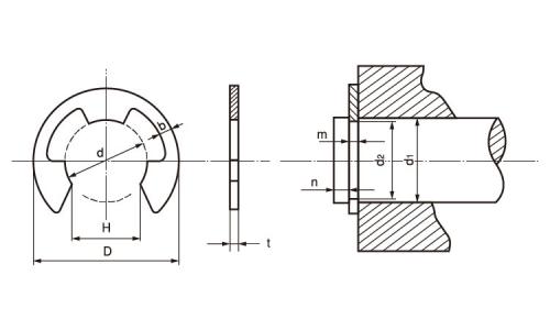 素材は ばね用鋼でできており、弾力を利用して溝にはまる様になっています。 AタイプとはJIS規格に準じたEリングの寸法をあらわしております。