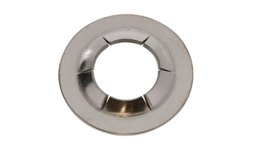 溝加工のない軸に一定方向から挿入する事により、内径側の爪が軸の外径をとらえ所定位置に固定するものです。(専用の治具が必要です。)