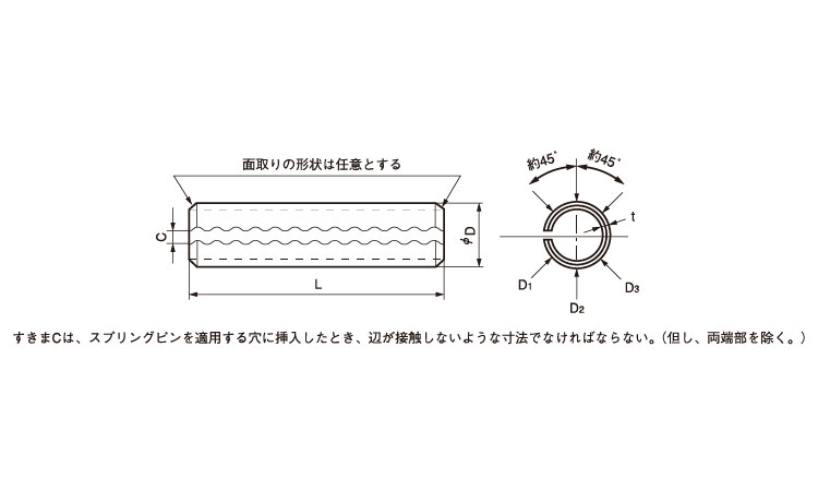 ばね性のある板材を丸め加工して合わせ目にすき間を設けラジアル(放射線状)方向へのばね力を利用し抜け止め、ヒンジなどに使用します。
