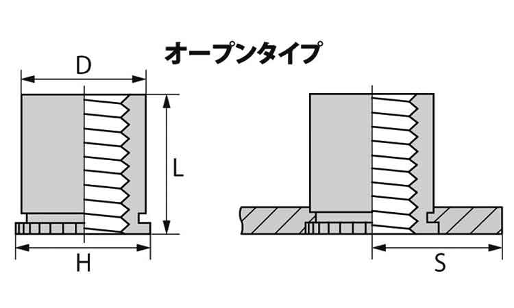 母材裏面からフランジ部を圧入するので、取付板表面に突起が生じず、フラットに仕上がります。