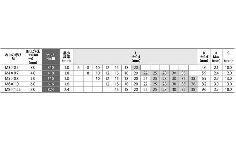 サイズ 径+長さ(ℓ) |
