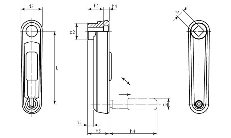ハンドクランクSUS角棒付(黒)