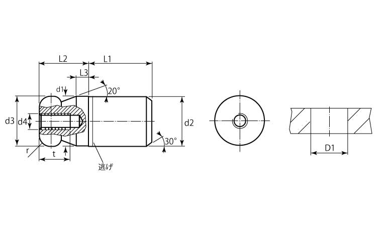 位置決めピンボール円形圧入部同径