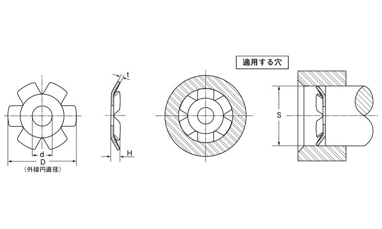 外周に角度の付いた爪があり、その爪のエッジ部分が穴の内部に食い込み、