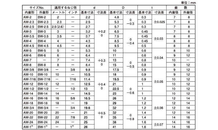 1.内歯形----内径側の歯を45度ほど絞り、ばね作用を利用してネジのゆるみを防止します。