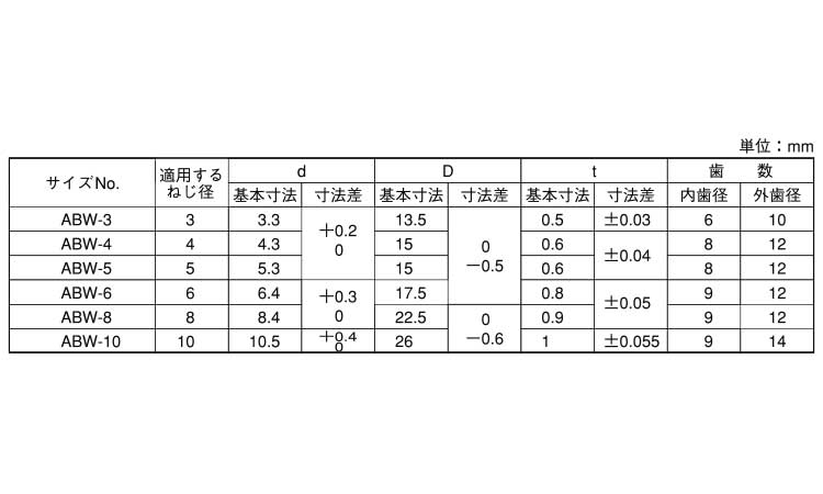 4.内外歯形--歯の数が内、外にあり、ゆるみどめ効果をさらに増大させた歯付座金です。