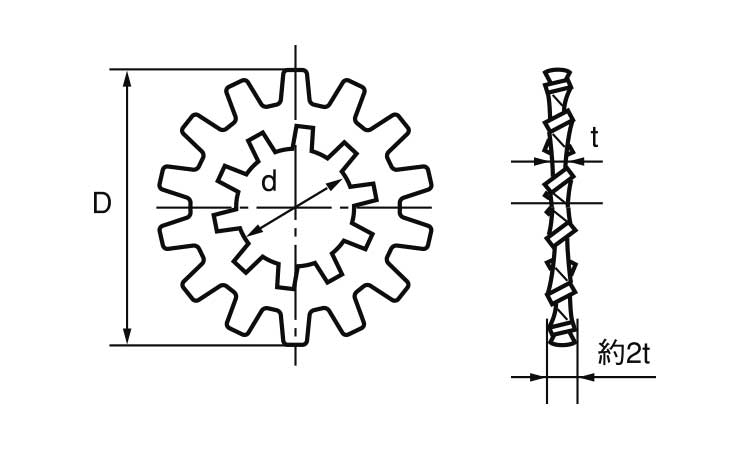 外歯形の方が歯の数が多く、内歯形よりもゆるみ止め効果は大きいです。